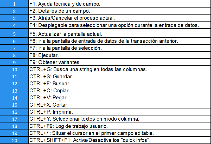 Utilizando las siguientes teclas se pueden ejecutar commandos rapidos en SAP GUI