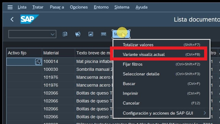 5.Guardar una variante de visualización , se regresa a la opción variante de visualización actual