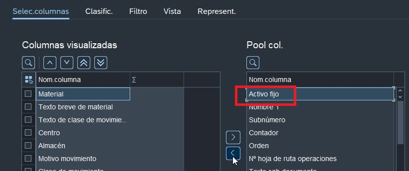 3. Desplazar la columna Activo fijo a la derecha , utilizar las flechas centrales , al tocarla se desplaza la columna.